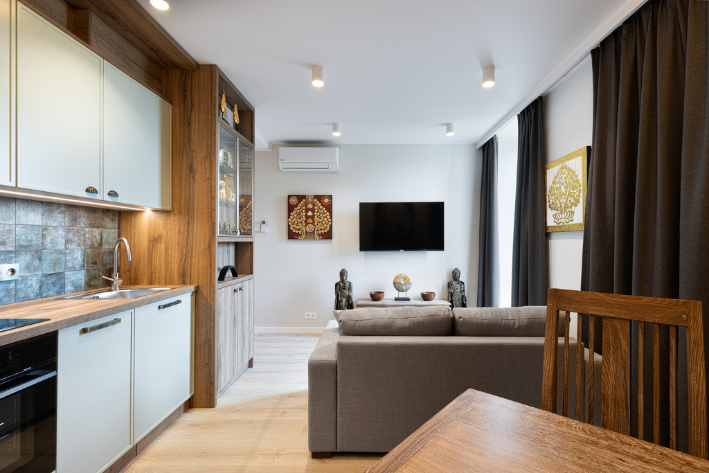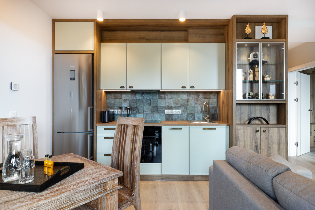 Eine kleine Küchenzeile ermöglicht die Zubereitung kleiner Mahlzeiten, ideal für einen unabhängigen Aufenthalt.